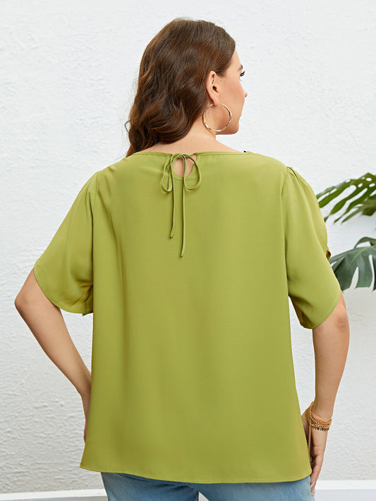 Crisscross Tie Back Flounce Sleeve Cropped Blouse