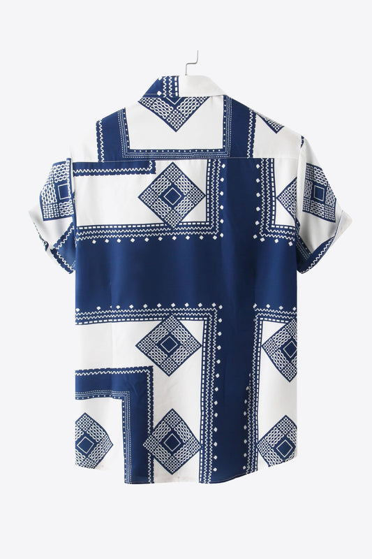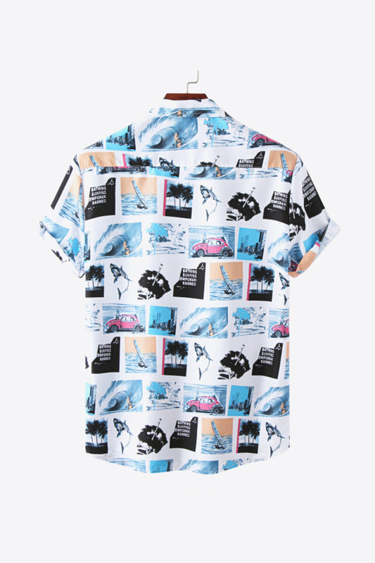 Full Size Multicolored Button-Up Curved Hem Shirt