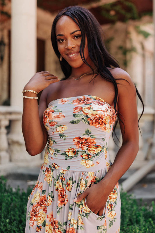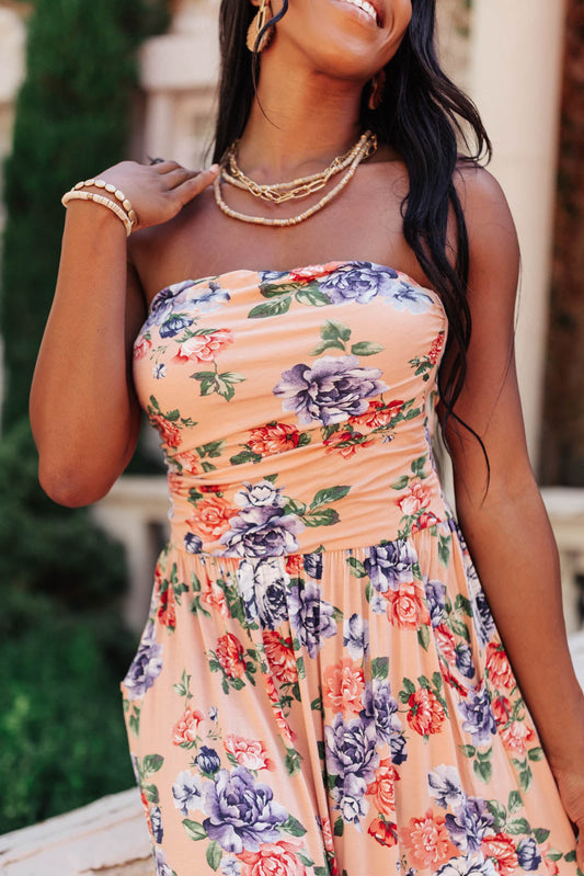 Rose One Shoulder Ruffles Maxi Dress with Sash