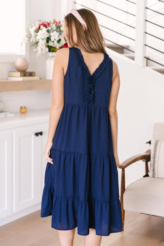 Tied Plunge Smocked Waist Flounce Sleeve Dress