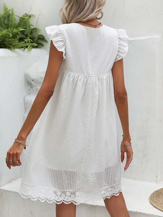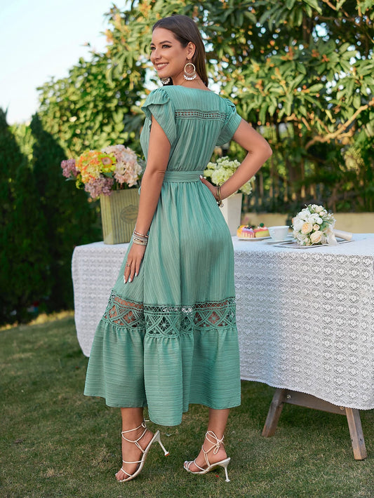 V-Neck Butterfly Sleeve Spliced Lace Dress