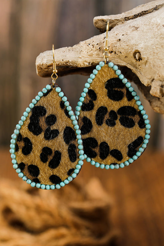 Contrast Leopard Turquoise Teardrop Earrings