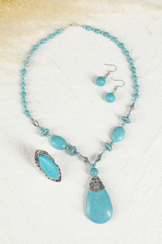 Turquoise Necklace, Earrings, and Ring Set