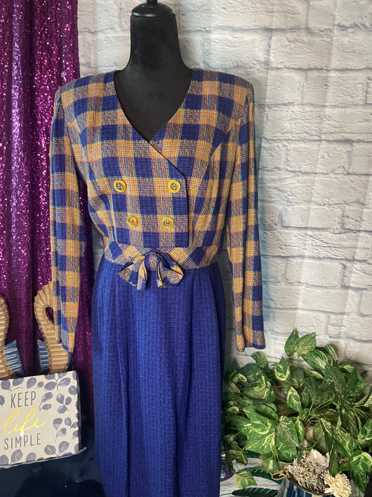 Vintage 1970s David Warren Blue/Gold Tweed Dress