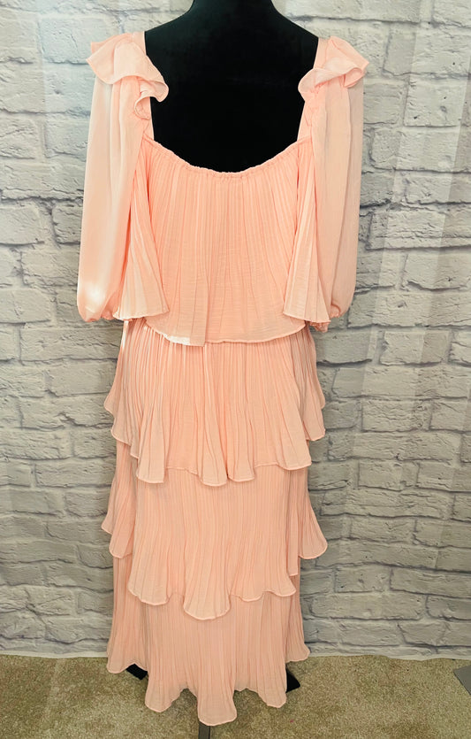 Just Me Pink Chiffon Tiered Maxi Dress (Lined)