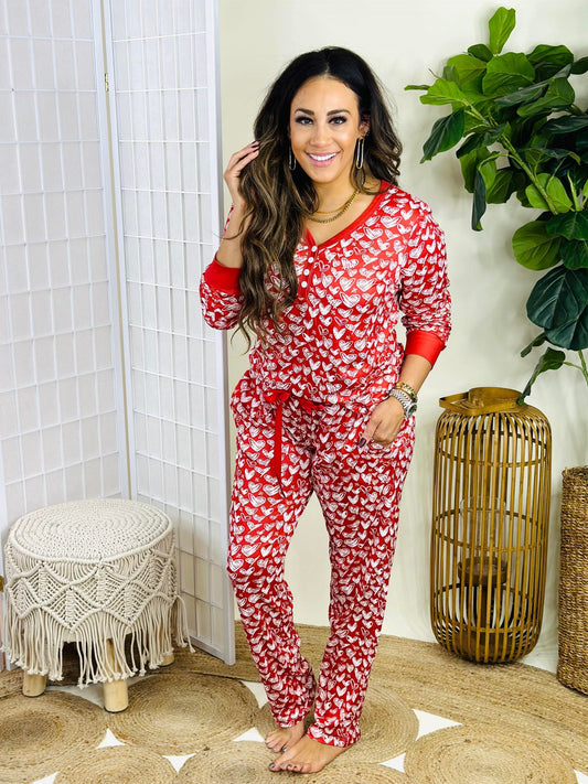 Matching Valentines Pajamas in Red Heart