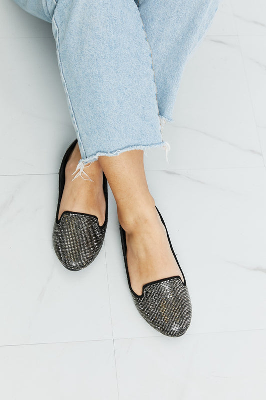 Forever Link Rhinestone Round Toe Flats in Black/Pewter