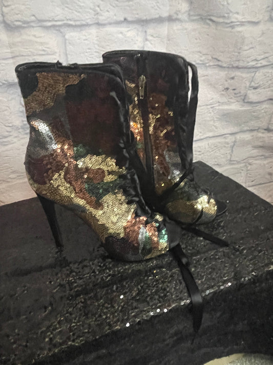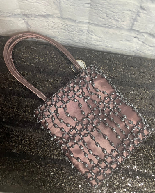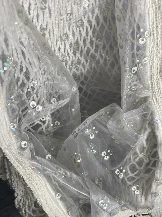 Bijoux Terner White Fishnet Bag with silver Sequin Trimming