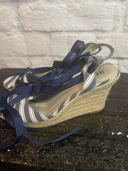 ANA Blue/White Striped Lace Up Wedge Sandals