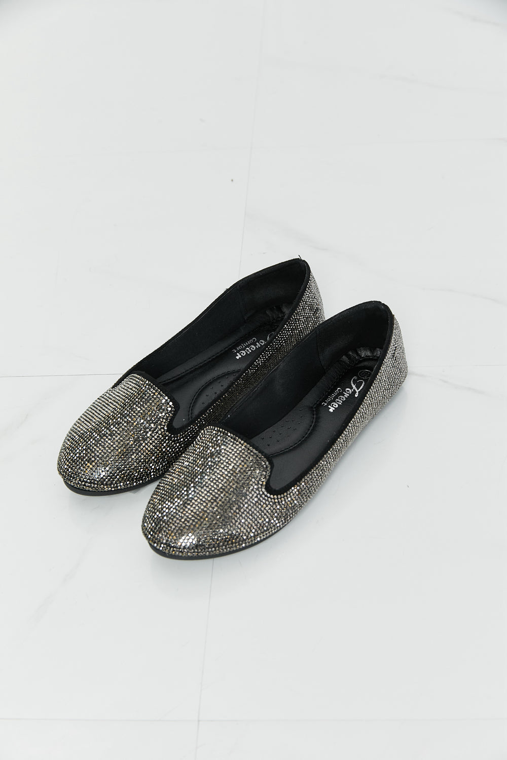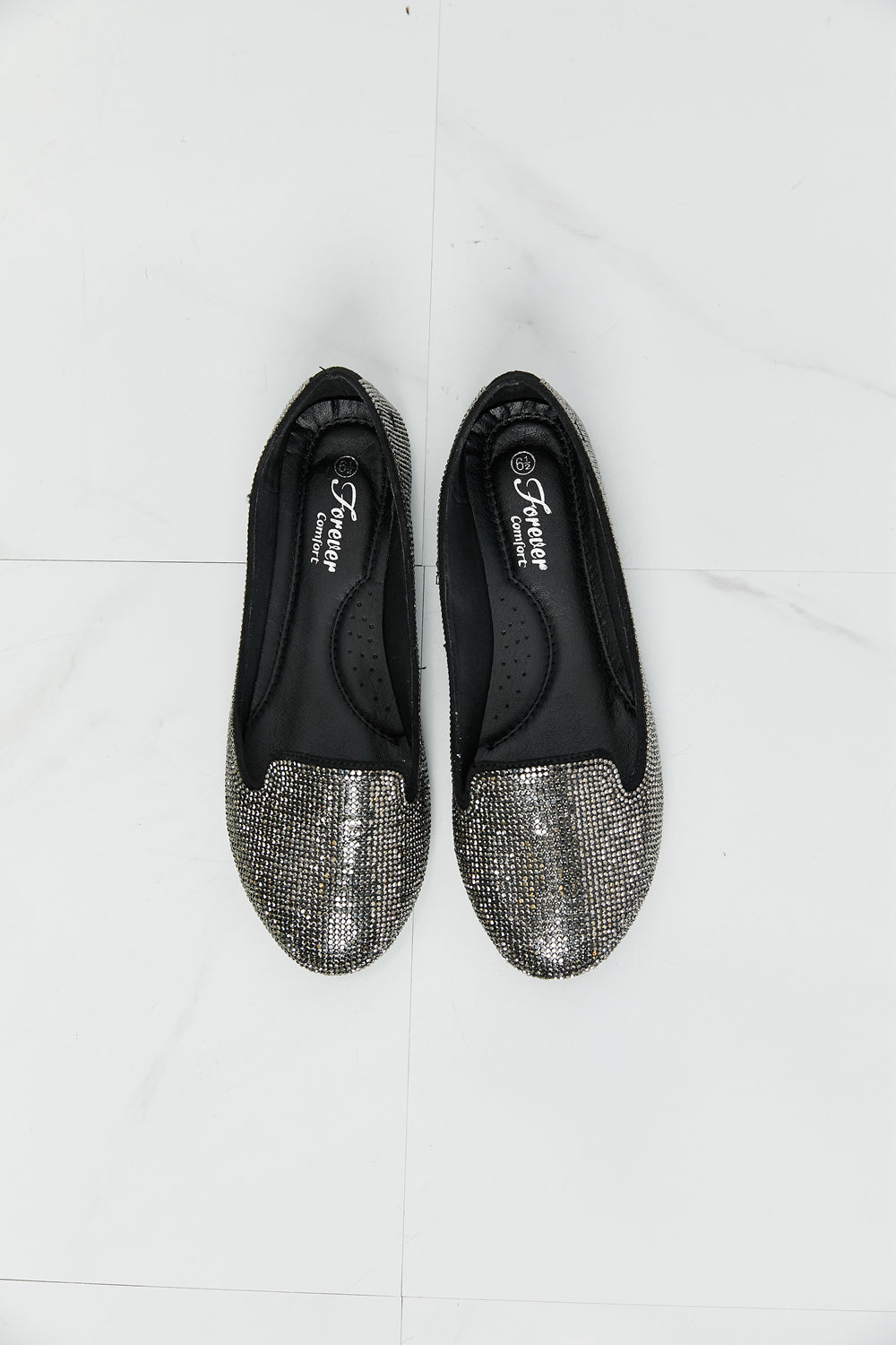 Forever Link Rhinestone Round Toe Flats in Black/Pewter