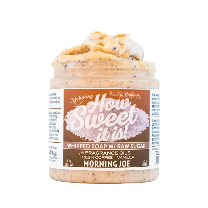 This luscious, whipped body soap has raw cane sugar for gentle exfoliation and added skin conditioning and balance. Apply to wet skin using circular motions and then rinse with warm water.